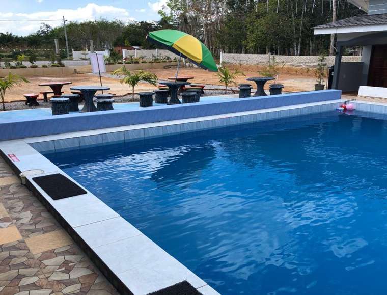 The water flows over one or more edges, producing a visual effect of water with no boundary. Such pools are often designed so that the edge appears to merge with a larger body of water such as the ocean, or with the sky.